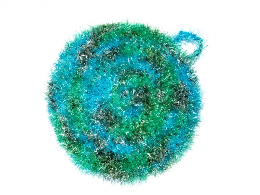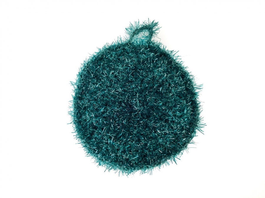 Dieses Tawashi wird in der Schweiz von Hand gehäkelt.