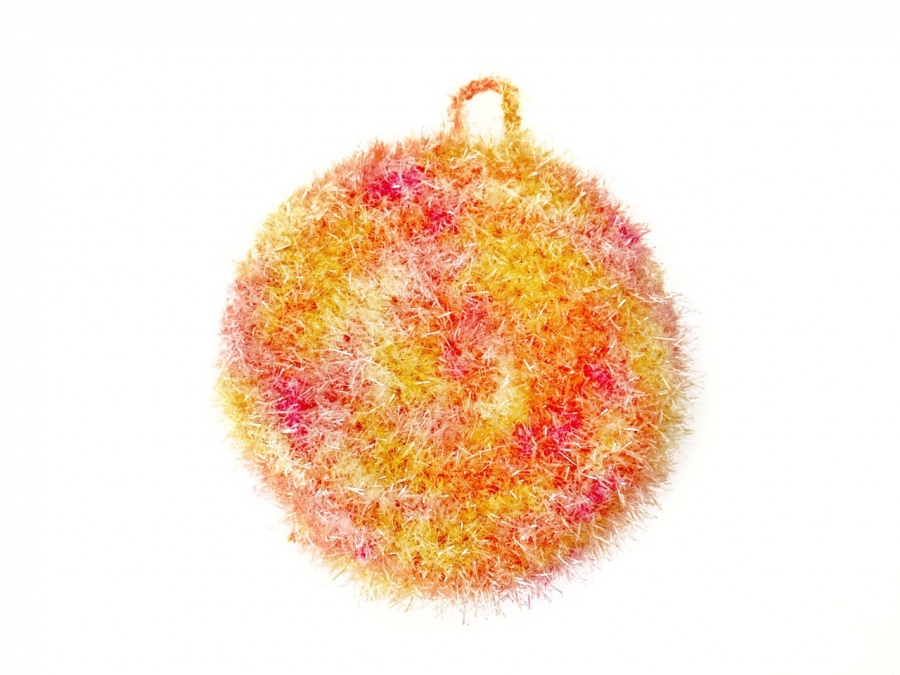 Dieses Tawashi wird in der Schweiz von Hand gehäkelt.